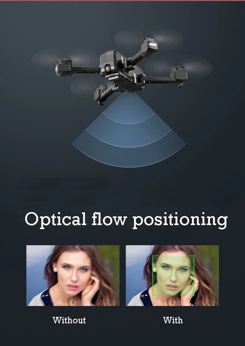 Camera inferioara are ca rol principal mentinerea pozitiei, astfel prin tehnologia optica drona isi mentine singura pozitia.