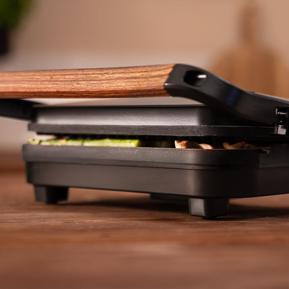 Design pe negru: bucurati-va de eleganta atemporala cu gratarul electric cu design negru. Manerul sau din lemn cu atingere rece nu ofera doar confort in manipulare, ci adauga si o nota de caldura bucatariei dumneavoastra.