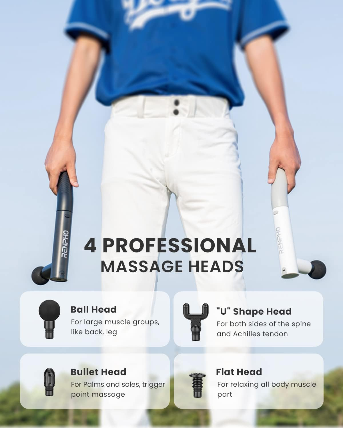 4 Capete de masaj si 4 Viteze: Alege dintre cele 4 capete de masaj pentru a obtine o relaxare tintita pentru diverse grupe musculare. Ajusteaza intensitatea masajului de la nivelul 1 la 4 in timp ce il folosesti si bucura-te de un masaj muscular cu penetrare profunda.
