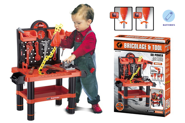 Acum baietelul tau poate sa invete sa lucreze cu unetle de reparat si unelte de construit. Diferitele unelte ii starnesc curiozitatea, descoperind noi moduri de a se juca.