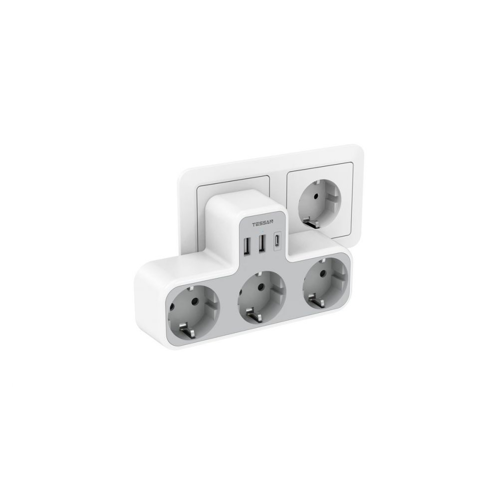 TESSAN TS-323-DE-C transforma o priza obisnuita intr-un hub de incarcare multifunctional. Conecteaza laptopul, incarca telefonul, tableta, ceasul inteligent sau castile wireless – toate in acelasi timp, fara incarcatoare suplimentare.