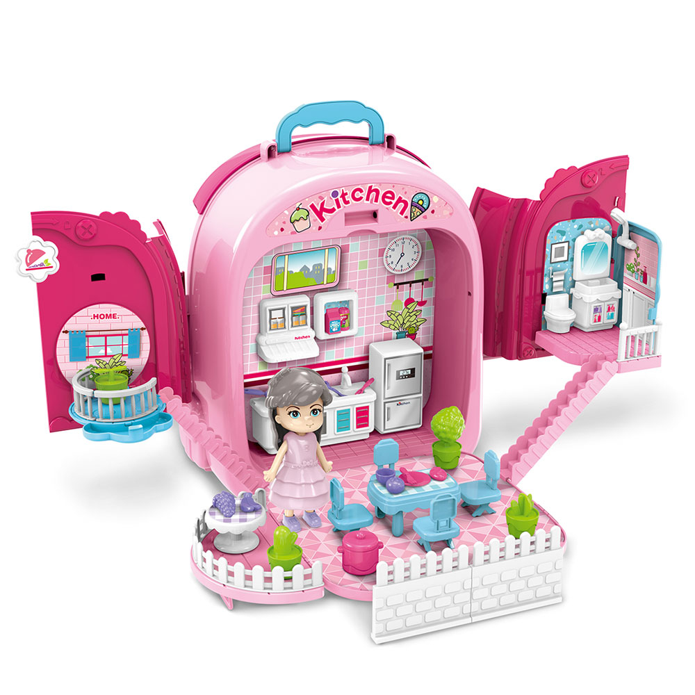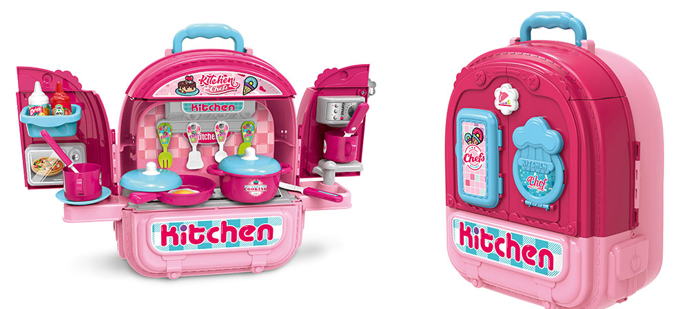 Set ghiozdan jucarie 3 in 1 Rovo 991, Bucatarie, Apartament Fetita, 86 piese, Roz