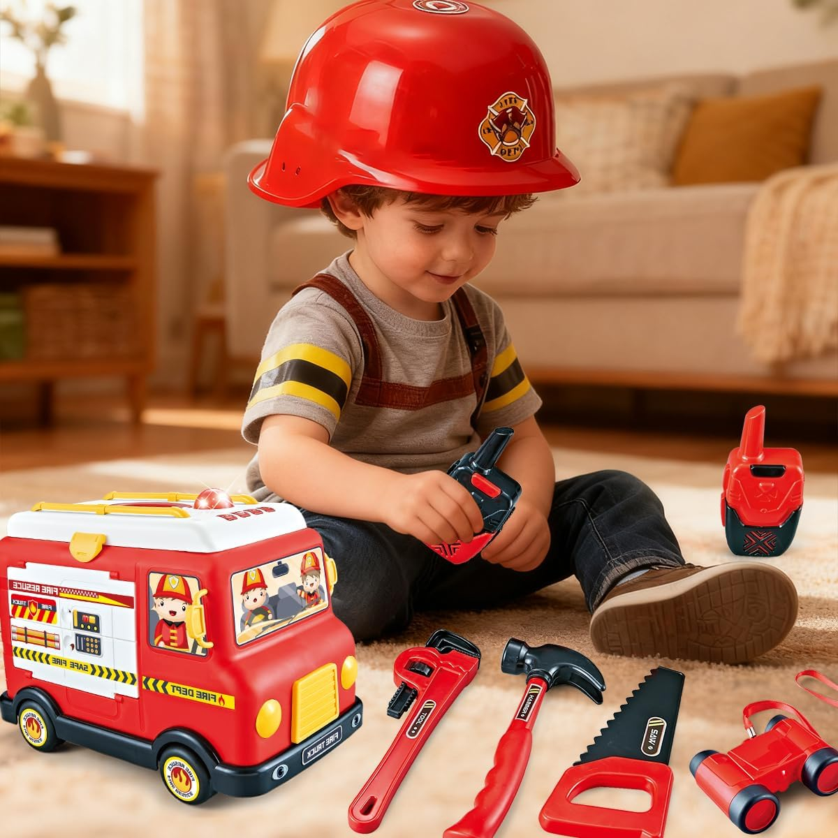 Set Bogat in Accesorii: Include o masina de pompieri robusta electrica care merge singura si o varietate de unelte si accesorii esentiale pentru orice misiune de salvare, oferind o experienta de joaca diversificata.